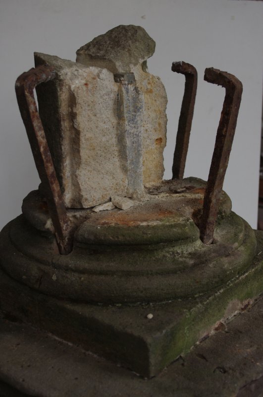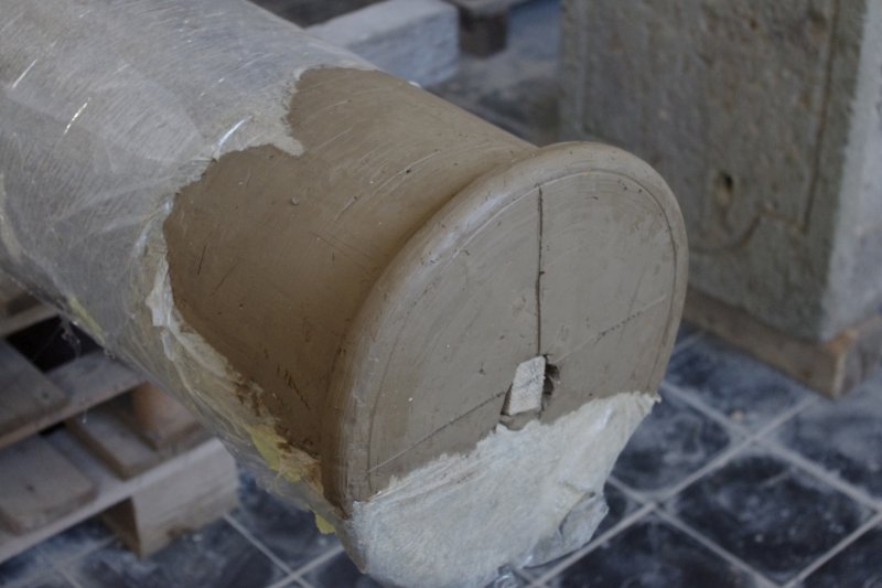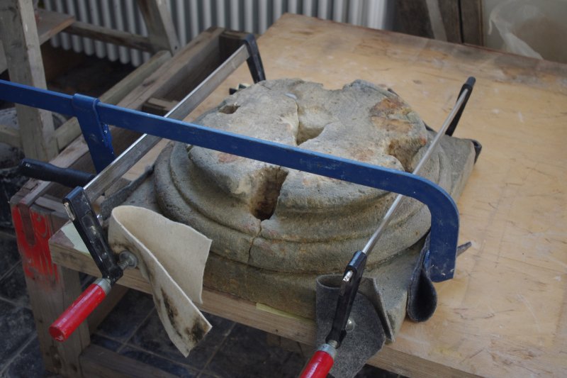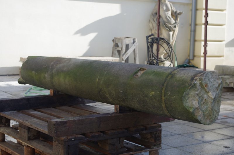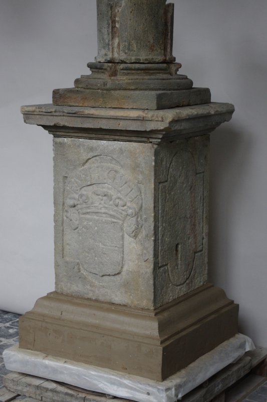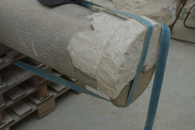 Kamenný sloup byl v havarijním stavu, byl roztrhán kovovým zkorodovaným čepem zalitým v olovu a novodobými kovovými sponami. Restaurování se netýkalo sochy Panny Marie a hlavice, která je deponována v oblastní galerii v Chomutově. Sloup, patka a sokl byl očištěn roložen na jednotlivé roztržené díly a následně restaurován. Bylo třeba obnovit nový první sokl, vytvořit nově jeho pravděpodobné tvarosloví a vysekat do materialu. Doplňek chybějící horní partie sloupu byl také vytvořen v hlíně a podle otisku vysekán do kamene. Jednotlivé roztržené díly byly slepeny, injektovány a tvarově doplněny. Sloup je osazen na původní místo a čeká na možné osazení panny sochy panny Marie