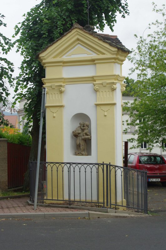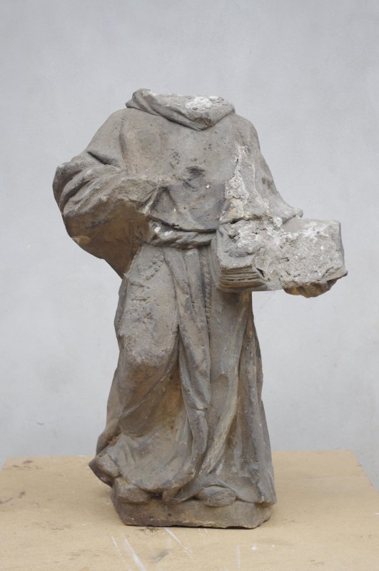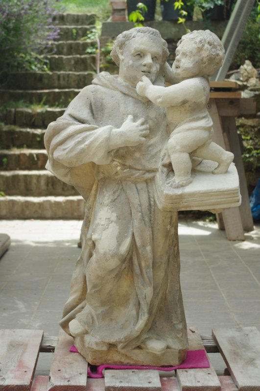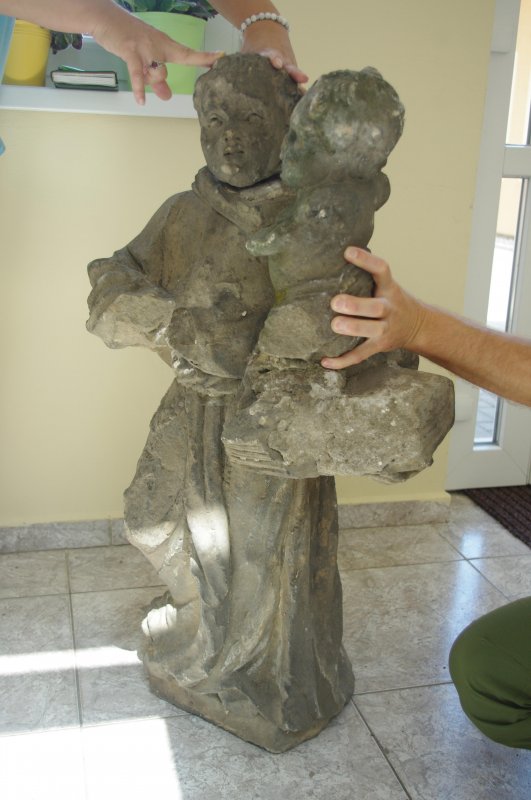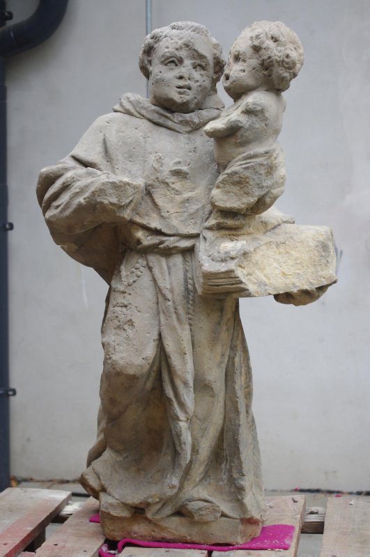 Socha byla údajně poničena opilci po 2. světové válce od té doby ve výklenku nebyla. Socha byla však jako torzo nalezena v potoku a uskladněna po dlouhý čas v nedaleké zahradě. Po opravě trojboké kaple 2018 byla snaha torzo, navrácené roku 2016 městu, restaurovat a navrátit zpět. V roce 2019 byla dokonce po veřejné výzvě jedním občanem navrácena i hlava sv. Antonína.