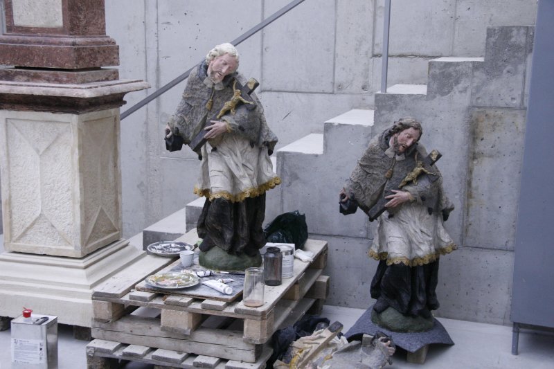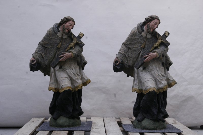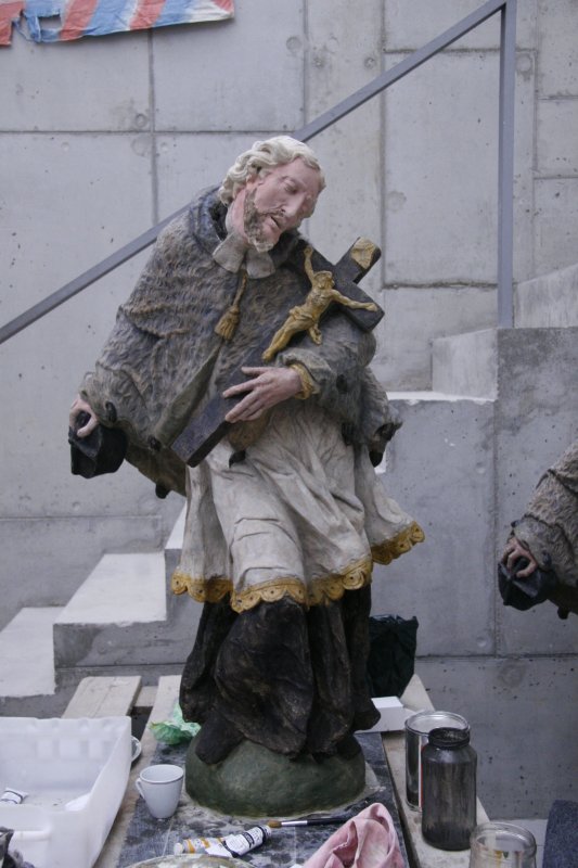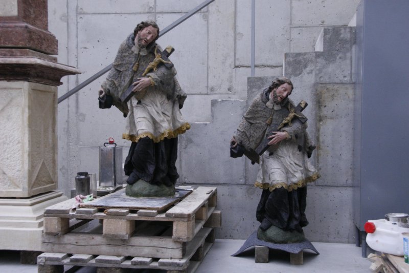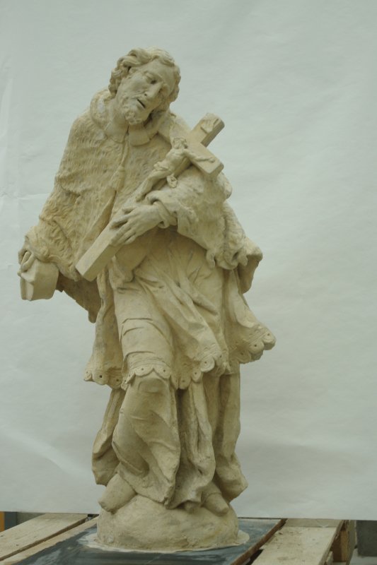 Opuková socha Jana Nepomuckého je mimořádně kvalitní a vznikla obava, že by po navrácení do volně přístupného prostoru kaple mohlo dojít k jejímu odcizení. Pro kapli v obci Lenešice byla tedy vytvořena kopie, stím že originál bude dán do depozitu města. Kopie byla provedena v románském cementu a barevná uprava byla provedena alkidovými barvami.